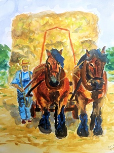 2025Hooiwagen met boer en trekpaarden