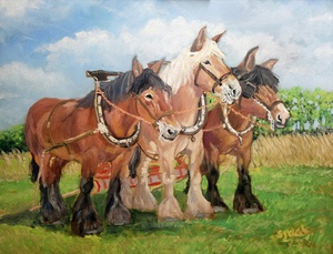 Drie Belgische trekpaarden
